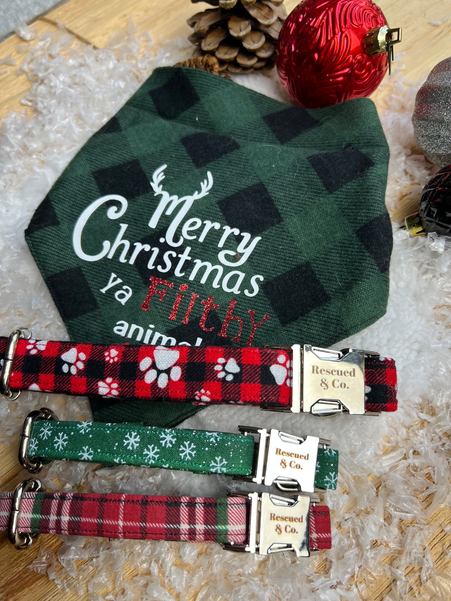 A holiday collar that will add a pop of color to your pet this holiday season! Rescued & Co collars are handmade with nylon strapping to provide significant strength and security.